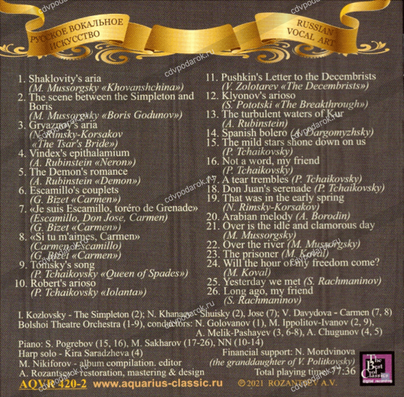 Политковский Владимир (баритон) "Арии и сцены из опер, романсы" Записи 1929-39 г./ VLADIMIR POLITKOVSKY (Baritone): Russian Opera Arias & Scenes; Songs by Rubinstein, Dargomyzhsky, Tschaikowsky, Rimsky-Korsakov, Borodin, Mussorgsky, Koval & Rachmaninoff.