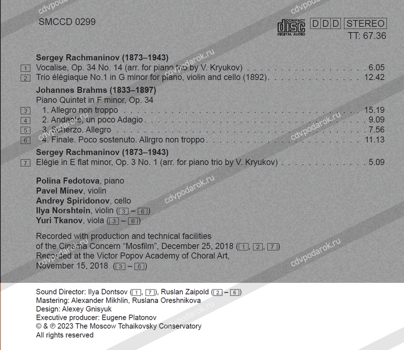 1 Vocalise, Op. 34 No. 14 (arr. for piano trio by V. Kryukov). . . . . . . . . . . . 6.05