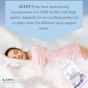 KAPPA NUTRITION Sleep 5, Sleep Aid, 60-Day Supply, Non-Habit Forming Vegan Capsules Natural Sourced Ingredients for Easier Bedtime, Herbal Supplement, Melatonin, Valerian Root, Chamomile Non-GMO