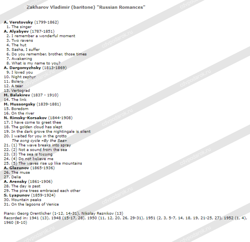 Захаров Владимир (баритон) "Русский романс"