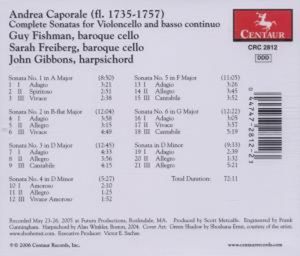 Andrea Caporale (1735-1757) - Sonaten für Cello & Bc Nr.1-6 (CD)