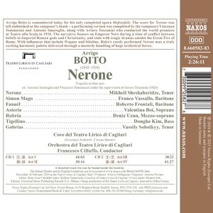 Сегодня Арриго Бойто наиболее известен благодаря своей единственной завершенной опере "Мефистофель". Партитура "Нерона" осталась незавершенной после смерти композитора - исполнительская версия была завершена композиторами Винченцо Томмазини и Антонио Смарелья вместе с Артуро Тосканини, который провел мировую премьеру в театре Ла Скала в 1924 году. В центре сюжета - император Нерон во времена конфликта между верой в римских богов и христианством, а заканчивается трагическая драма в разгар Великого римского пожара. Редко исполняемое произведение создано под влиянием Вагнера и Сибелиуса и покоряет своими поистине захватывающими гармониями, которые подчеркиваются мастерским использованием большого оркестра