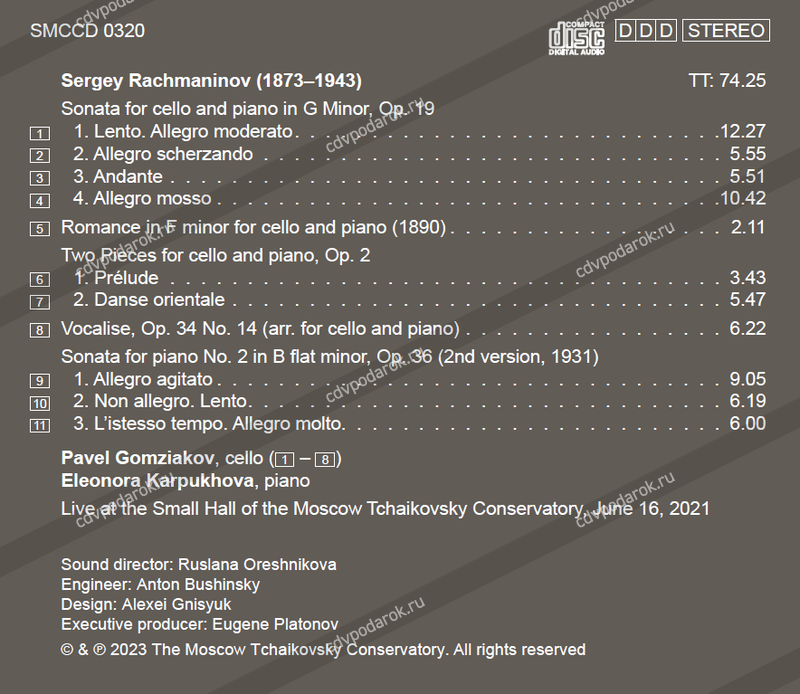 8 Вокализ, Op. 34 № 14 (транскрипция для виолончели и фортепиано). 6.22