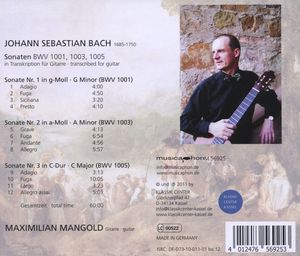 Johann Sebastian Bach (1685-1750) - Sonaten BWV 1001,1003,1005 für Gitarre (CD)