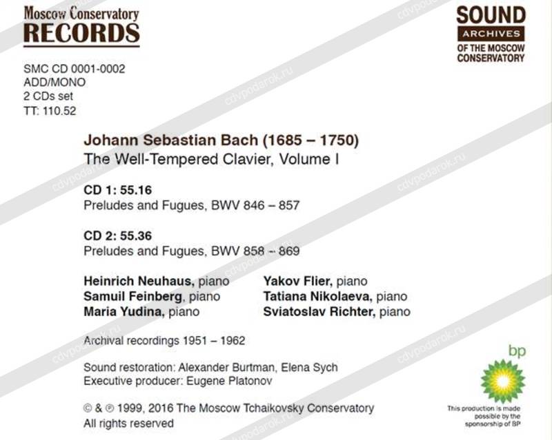 Если это так, то музыка Баха, как никакая другая, символизирует такую возвышенную независимость от конкретных места и времени. Впрочем, как можно судить по представленным здесь записям «Хорошо темперированного клавира», «место» – а именно Москва середины XX века – всё же даёт о себе знать. Но только совсем в другом смысле. Слушатель имеет редкую возможность познакомиться с московской фортепианной школой в лице её