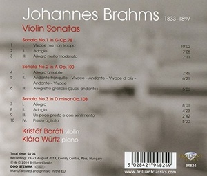Brahmsi: Violin Sonatas op.78 / 100 / 108. Kristof Barati; Klara Würtz