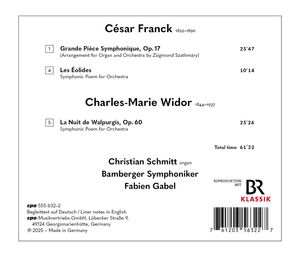 Тот, кто называет органное произведение "Большой симфонической пьесой", не должен удивляться, если это название однажды послужит мерилом для определения правомерности атрибуции. Именно так поступил органист, композитор и педагог Жигмонд Сатмари, который по инициативе своего молодого коллеги Кристиана Шмитта изучил оркестровые возможности "большой симфонической пьесы" Сезара Франка. Результатом этого исследования стала мировая премьера концертной пьесы, в которой королева инструментов и ее олицетворенные регистры, то есть оркестр, образуют пленительный синтез. Через известную тональную поэму Франка "Les Éolides" ("Дочери Эола") программа, наконец, приводит к дискографической редкости Шарля-Мари Видора - "Вальпургиевой ночи", которая легко соперничает с самыми знаменитыми танцами ведьм в романтической литературе.