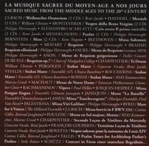 Дирижеры: Creed Marcus / Кред Маркус Herreweghe Philippe / Херревег Филипп Nevel Paul van / Невель Пол ван Christie William / Кристи Уильям Banchini Chiara / Банкини Кьяра Junghänel Konrad / Юнгхенель Конрад Jacobs René / Якобс Рене Nagano Kent / Нагано Кент Hillier Paul / Хиллир Пауль