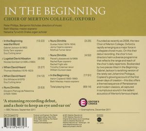 Merton College Choir Oxford - In The Beginning (CD)