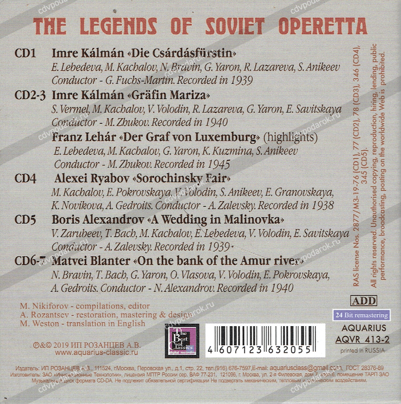 Легенды советской оперетты 7CD BOX (картон). Записи московского радио 1938-40 гг./THE LEGENDS OF SOVIET OPERETTA
