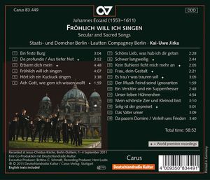 Johannes Eccard (1553-1611) - Geistliche & weltliche Lieder "Fröhlich will ich singen" (CD)