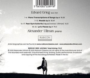 Британский пианист Александр Ульман представляет программу настроений, песен и лирических пьес Эдварда Грига. Как и Шопен, Григ тоже создавал изысканные миниатюры, а не масштабные оркестровые произведения. Оба они также сочиняли фортепианные концерты, и пример Грига является одним из самых популярных в репертуаре, но именно в небольших сольных произведениях его поэтическое музыкальное выражение раскрылось в полной мере. В программу также включены песни, которые композитор переложил для фортепиано соло.