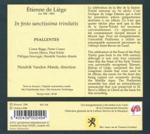 Etienne de Liege (850-920) - In Festo Sanctissima Trinitatis (CD)