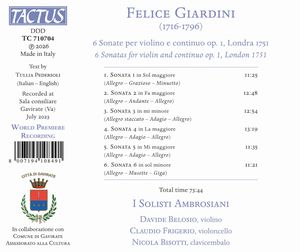 Felice Giardini (1716-1796) - Violinsonaten op.1 Nr.1-6 (London 1751) (CD)