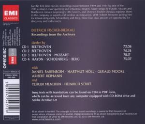Исполнители: Moore Gerald, piano / Мур Джеральд, фортепиано Fischer-Dieskau Dietrich, baritone / Фишер-Дискау Дитрих, баритон Barenboim Daniel, piano / Баренбойм Даниэль, фортепиано Höll Hartmut, piano / Хёлль Хартмут, фортепиано