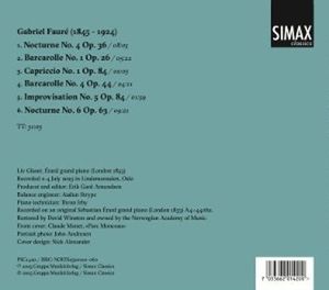 Лив Глейзер может оглянуться на замечательную карьеру пианистки. После обучения во Франции и концертного дебюта в Осло она объездила весь мир и стала важным послом норвежской музыки. В возрасте 29 лет она была награждена Королевской медалью за заслуги в золоте, а ее концерты и записи, получившие признание критиков, закрепили за ней положение солистки и камерного музыканта мирового класса. Музыкальное образование Глейзер имеет французский колорит. В 1950-х годах она училась игре на фортепиано у Владо Перлемутера, ученика Равеля, который, в свою очередь, был учеником композитора Фора. Записав альбом "Un peu francais: Pieces selectnees de Gabriel Faure", Глейзер возвращается к своим французским фортепианным корням. Цветовая палитра Фора раскрывается здесь с тонкой техникой, а история находит отклик в инструменте. Глейзер играет эти пьесы на французском рояле Érard 1853 года.