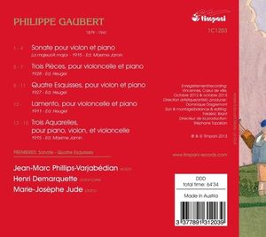 Исполнители: Phillips-Varjabédian Jean-Marc, violin / Филлипс-Варжабедян Жан-Марк, скрипка Demarquette Henri, cello / Демаркетт Анри, виолончель Jude Marie-Josèphe, piano / Жюд Мария-Жозефа, фортепиано Philippe Gaubert (1879-1941) / Philippe Gaubert (1879-1941)