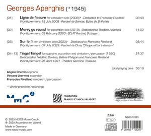 В композициях "Tingel Tangel", "Merry Go Round", "Sur le fil" и "Ligne de fissure" франко-греческий композитор Жорж Апергис вновь демонстрирует свой мастерский талант играть с идентичностью, эмоциями и абстракцией. Музыка разворачивается между танцевальной моторикой, механическим разрывом и поэтической хрупкостью, которая является одновременно физически и интеллектуально сложной. Аккордеон и - реже в творчестве Апергиса - цимбалы занимают центральное место. Оба инструмента создают связь с воображаемыми фольклорными звуковыми ландшафтами, которые напоминают Бартока, но не могут быть локализованы.