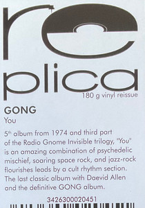 You - пятый студийный альбом группы Gong, впервые выпущенный в октябре 1974 года. Теперь выходит ремастированная версия альбома, дополненная ранее не издававшейся записью концерта в лондонском Гайд-парке в июне 1974 года, альтернативной версией "A PHP's Advice" и редкой версией "Where Have All The Flowers Gone?". На CD 1 двойного диска также есть две бонусные песни.