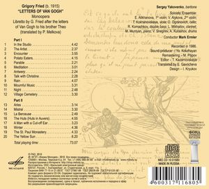 Григорий Фрид "ПИСЬМА ВАН ГОГА"(Letters of Van Gogh). 1 CD