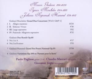 Эта редкая запись содержит четыре композиции Мауро Джулиани, три из которых три из которых были написаны совместно с композиторами Иоганном Игнацем Мошелесом и Непомуком Гуммелем. Этот релиз является продолжением новых записей Новых записей издания Джулиани.