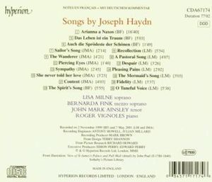 Исполнители: Ainsley John Mark, tenor / Эйнсли Джон Марк, тенор Vignoles Roger, piano / Виньол Роджер, фортепиано Fink Bernarda, mezzo / Финк Бернарда, меццо Milne Lisa, soprano / Милн Лайса, сопрано Joseph Haydn (1732-1809) / Joseph Haydn (1732-1809)