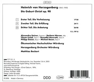 Heinrich von Herzogenberg (1843-1900) - Die Geburt Christi op.90 (CD)