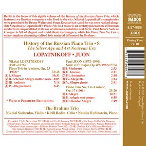 Берлин - тема восьмого выпуска "Истории русского фортепианного трио", в котором рассказывается о двух русских композиторах, живших в этом городе. Премьера симфоний Николая Лопатникова состоялась у Бруно Вальтера и Сержа Кусевицкого, а сам он в свое время стоял в одном ряду с Игорем Стравинским. Фортепианное трио ля минор Лопатникова - архетипический пример русского модернизма, непревзойденный по использованию аллюзий, клавира и формы. Сюита до мажор Поля Юона полна элегантных и ярких театральных образов, а в его Первом фортепианном трио ля минор использованы очаровательные, стилизованные мотивы народной музыки под влиянием Иоганнеса Брамса.