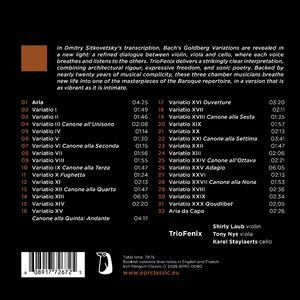 В транскрипции Дмитрия Ситковецкого "Гольдберг-вариации" Баха предстают в новом свете: как изысканный диалог между скрипкой, альтом и виолончелью, в котором каждый голос дышит и прислушивается к остальным. TrioFenix предлагает впечатляюще ясную интерпретацию, сочетающую в себе архитектурную строгость, экспрессивную свободу и тональную поэзию. Опираясь на почти двадцатилетнюю музыкальную близость, эти три камерных музыканта вдохнули новую жизнь в один из шедевров барочного репертуара в версии, которая является столь же живой, сколь и интимной.