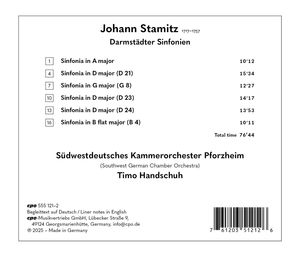Johann Stamitz (1717-1757) - Darmstädter Symphonien D-Dur (D 21), D-Dur (D 23), D-Dur (D 24), G-Dur (G 8), A-Dur, B-Dur (B 4) (CD)