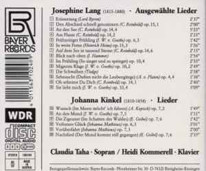 Josephine Lang (1815-1880) - Lieder (CD)
