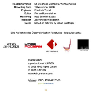 Klaus Lang (geb. 1971) - tönendes licht für Orgel & Orchester (2020) (CD)