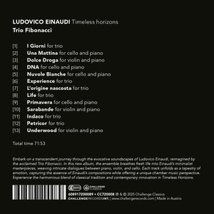 С этим альбомом Трио Фибоначчи отправляется в путешествие по медитативной и глубоко человечной вселенной Людовико Эйнауди, мастера современного минимализма. Его произведения, основанные на повторяющихся мотивах и тонких гармонических вариациях, открывают пространство для созерцания и чистых эмоций. Многие из представленных здесь произведений были специально аранжированы Trio Fibonacci для дуэта или трио, что придало музыке новую вибрацию и эмоциональную глубину, сохранив при этом верность духу композитора.
