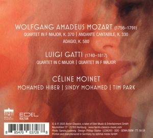 Селин Муане уже выпустила три альбома на лейбле Berlin Classics в 2025 году с музыкой Баха, Шумана и французских композиторов. В ее новом альбоме Адажио для кордебалета K580a Моцарта и квартета гобоев сочетается с мировыми премьерами струнных квартетов фа мажор и до мажор Луиджи Гатти. Гатти, переехавший в Зальцбург в 1782 году и знакомый с семьей Моцарта, написал эти произведения после распада Зальцбургского княжеско-архиепископского дома в 1803 году. Фа-мажорный квартет, в частности, предъявляет высокие виртуозные требования к гобою, его пассажи доходят до высокого G (g''') - смелое расширение тональных возможностей и признак новаторского духа Гатти.