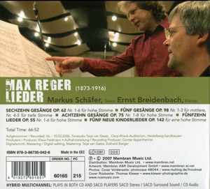 Исполнители: Schäfer Markus, tenor / Шефер Маркус, тенор Breidenbach Ernst, piano / Брайденбах Эрнст, фортепиано Max Reger (1873-1916) / Max Reger (1873-1916)