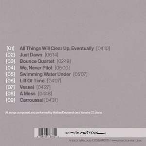 Своим вторым альбомом "All Things Will Clear Up, Eventually" бельгийский композитор и пианист Маттиас Девриендт хочет побудить слушателей прислушаться к себе. Подобно тому, как человек лежит на спине и смотрит на облака, забывая о себе, воспринимая совершенно новые формы и цвета и тем самым сохраняя свое психическое здоровье, музыка также должна приглашать нас сделать паузу и надеяться в трудные времена обнаружить лучи надежды - детские образы посреди тьмы. Музыка Маттиаса Девриендта чувствует себя как дома в самых разных местах: на фестивальных сценах, в уютных мансардах, на концертах в церквях или на пляже. Он видит себя в традициях Кита Джарретта, Йоханна Йоханнсона, Филипа Гласса, Рюичи Сакамото и Нильса Фрама.