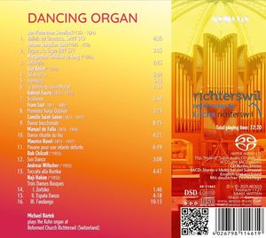 Под девизом "Танцующий орган" чешский органист Михаэль Бартек составил разнообразную программу из танцевальных произведений разных эпох - оригинальных композиций и виртуозных транскрипций. Его инструмент - "свой" орган Kuhn в церкви Рихтерсвиль под Цюрихом. Для этого SACD звук был оптимально воспроизведен как стерео, а также как объемная запись 5.1.