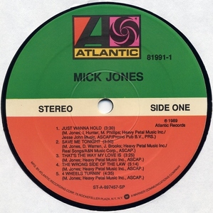 Mick Jones LP (Vinyl Album) US Atlantic 1989