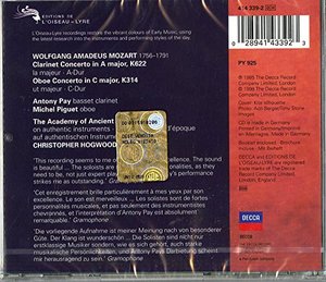 Mozart: Clarinet Concerto / Oboe Concerto. Antony Pay, Michel Piguet, The Academy of Ancient Music, Christopher Hogwood
