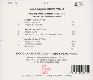 Исполнители: Kagan Oleg, violin / Каган Oлег, скрипка Richter Svyatoslav, piano / Рихтер Святослав, фортепиано Wolfgang Amadeus Mozart (1756-1791) / Wolfgang Amadeus Mozart (1756-1791)