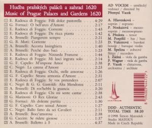 Композиторы: Caccini, Giulio Romano / Каччини Джулио Романо Negri, Cesare / Негри Чезаре Gastoldi, Giovanni Giacomo / Гастольди Джованни Джакомо Brunelli, Antonio / Брунелли Антонио Foggia, Enrico Radesca di / Фоджа Энрико Радеска ди Fornaci, Giacomo / Форначи Джакомо Muti, Giovanni Battista / Мути Джованни Баттиста Capello, Giovanni Francesco / Капелло Джованни Франческо Marinoni, Girolamo / Маринони Джироламо