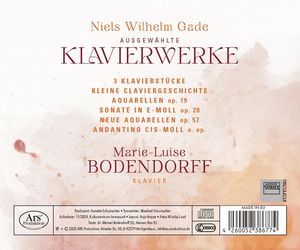 Тот факт, что Нильс Вильгельм Гаде стал известен как композитор прежде всего благодаря симфонической и концертной музыке, вероятно, является одной из причин того, что его фортепианная музыка, несмотря на широкое распространение в печати при его жизни, была отодвинута в тень. Мари-Луиза Бодендорфф представляет здесь подборку фортепианных сочинений Гаде, из которой становится ясно, что нам следует пересмотреть наше представление о Гаде.