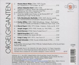 Композиторы: Bach, Johann Sebastian / Бах Иоганн Себастьян Mendelssohn-Bartholdy, Jakob Ludwig Felix / Мендельсон-Бартольди Якоб Людвиг Феликс Widor, Charles-Marie Jean Albert / Видор Шарль-Мари Жан Альбер Jongen, (Marie-Alphonse-Nicolas-) Joseph / Жонжен (Мари-Альфонс-Никола-) Жозеф Dupré, Marcel / Дюпре Марсель Willan, Healey / Уиллан Хели Karg-Elert, Sigfrid / Карг-Элерт Зигфрид Lang, Craig Sellar / Ланг Крейг Селлер German, David / Герман Давид Schneider, Enjott (Norbert Jürgen) / Шнейдер Эньотт (Норберт Юнгер)