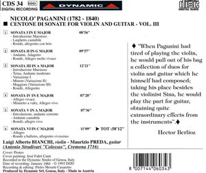 Niccolo Paganini (1782-1840) - Centone di Sonate f.Violine & Gitarre Vol.3 (CD)