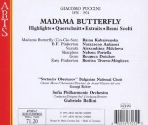 Т.Уилсон в "Орфее" 1/86: "Эта интерпретация эта интерпретация полностью вдохновляет слушателя, который кто хочет испытать музыкальную драму Кабаиванска здесь - волшебница настроений Настроений, она трогательна без слез горда, не выглядя при этом холодной, и женственна, не женственна, не теряя девичества, наивность маленькой миссис Баттерфляй наивность - она доминирует в ней От исполнения песни до ее пронзительного самоубийства Запись абсолютно верная"Треклист