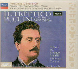 Исполнители: Washington Paolo, bass / Уошингтон Паоло, бас Tebaldi Renata, soprano / Тебальди Рената, сопрано Monaco Mario del, tenor / Монако Марио дель, тенор Palma Piero de, tenor / Пальма Пьеро де, тенор Corena Fernando, bass / Корена Фернандо, бас Merrill Robert, baritone / Меррил Роберт, баритон Mercuriali Angelo, tenor / Меркуриали Анджело, тенор Simionato Giulietta, mezzo / Симионато Джульетта, меццо Danieli Lucia, mezzo / Даниели Луча, меццо Ercolani Renato, tenor / Эрколани Ренато, тенор Morresi Giuseppe, bass / Моррези Джузеппе, бас Lazzari Agostino, tenor / Лаццари Агостино, тенор Carral Dora, soprano / Каррал Дора, сопрано Foiani Giovanni, bass / Фойани Джованни, бас Maionica Silvio, bass / Майоника Сильвио, бас Tavolaccini Giuliana, soprano / Таволаччини Джулиана, сопрано Truccato Pace Miti, mezzo / Труккато Паче Мити, меццо Stasio Anna di, mezzo / Стасио Анна ди, меццо Valtriani Jeda, soprano / Вальтриани Еда, сопрано Nino Antonino di, tenor / Нино Антонио ди, тенор Giacomo Puccini (1858-1924) / Giacomo Puccini (1858-1924)