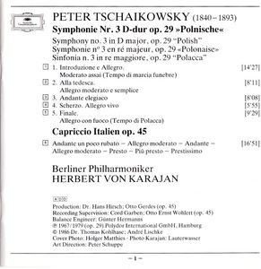 Pyotr Il'yich Tchaikovsky & Karajan: Tchaikovsky: Symphony no.3 & Capriccio Italien / Karajan