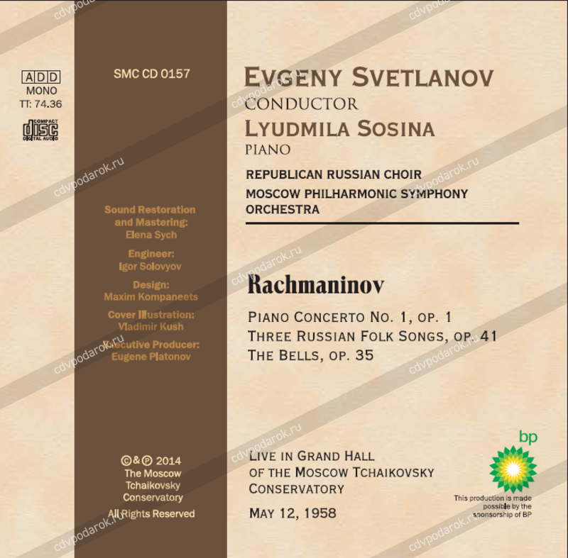 Предлагаемый вниманию слушателей CD открывает новую неизвестную страницу в коллекции записей музыки Сергея Рахманинова Евгением Светлановым. В масштабности творческого мышления, стремлении подчеркнуть яркие образные контрасты, заострить смысловые акценты, выявить сочные живописные тембры инструментов оркестра выдающийся отечественный ди-рижёр является признанным корифеем и носителем великих традиций интерпретации русской музыки. Осуществлённая в Большом зале Московской консерватории 12 мая 1958 года запись предоставляет возможность ощутить атмосферу того концерта и услышать особенности светлановского подхода к музыке любимого им русского композитора.