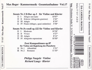 REGER MAX - KAMMERMUSIK GESAMTAUFNAHME VOL 17