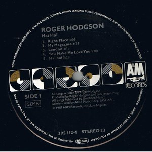 Roger Hodgson: Hai hai (1987) / Vinyl record [Vinyl-LP]